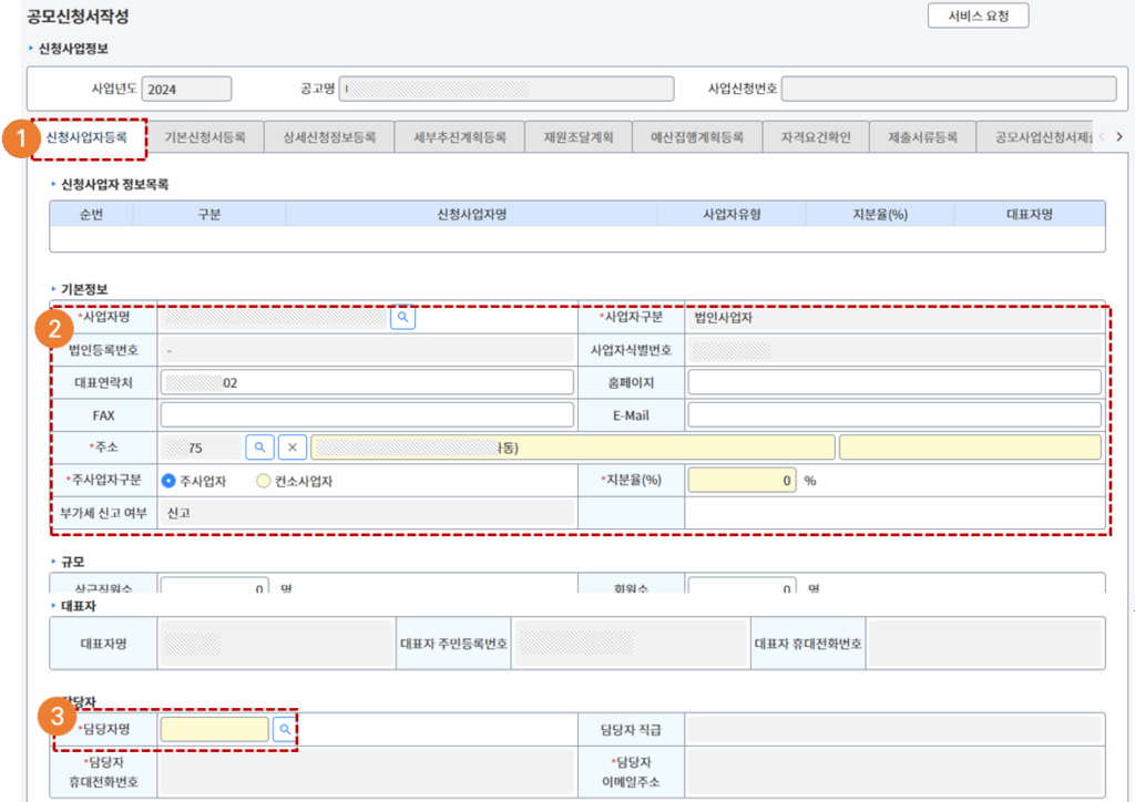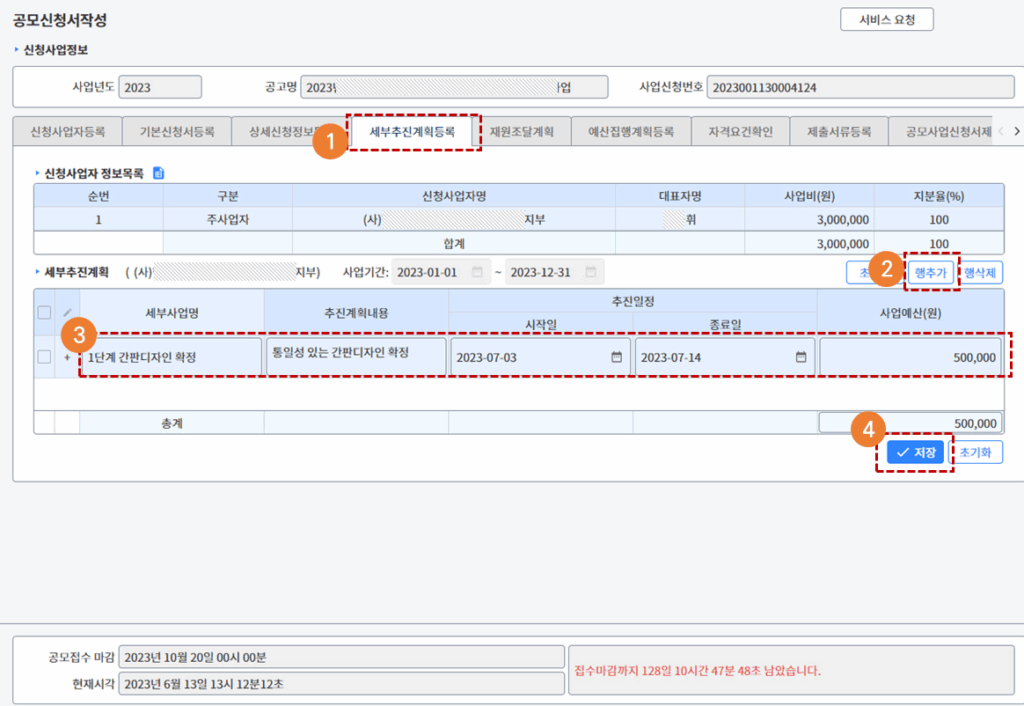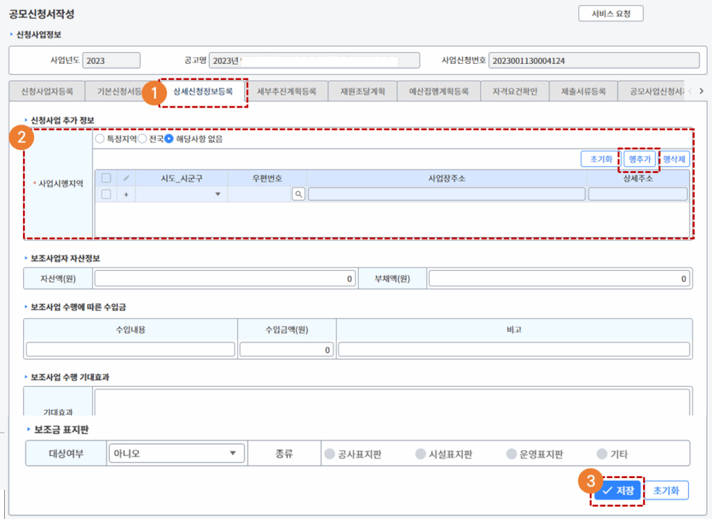 - [상세신청정보등록] 탭을 클릭합니다.
