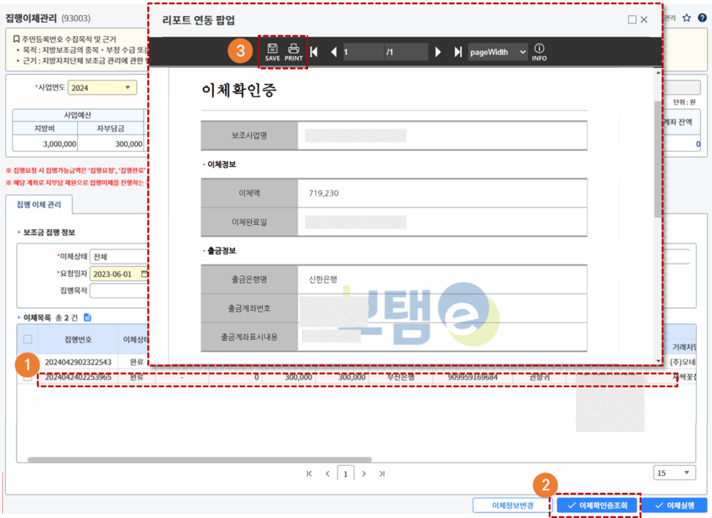3. 이체확인증을 저장/출력합니다.