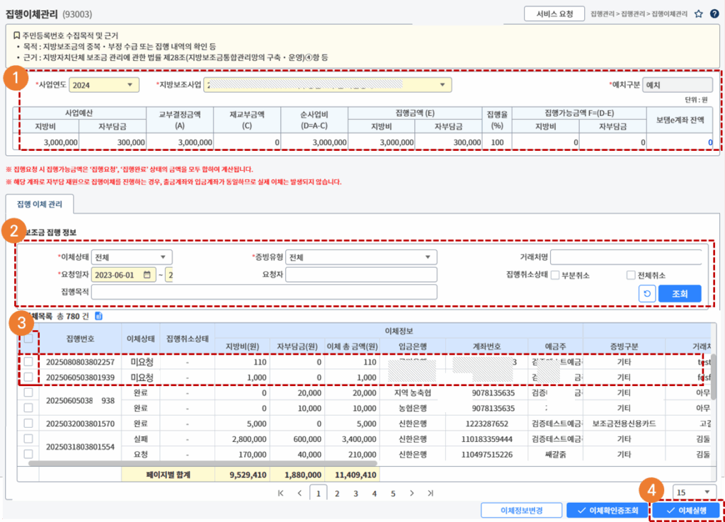 4. 집행관리-집행관리-집행이체관리 (93003)