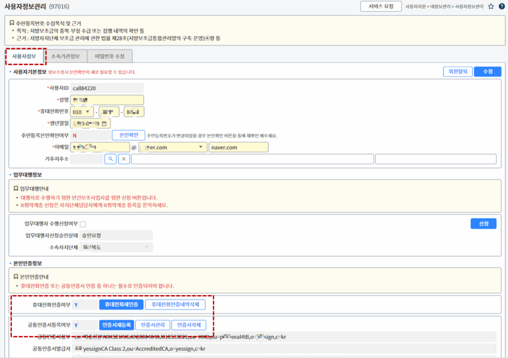 보탬e 지방보조사업자 : 신청/교부 과정 - (2)사용자정보관리(예치/비예치 공통)